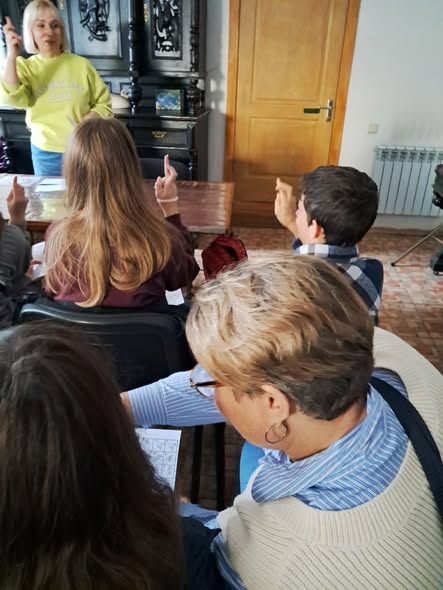А цього року до мене постукалася в приватні повідомлення Кисельова Наталі, яка є професійною синхроністкою перекладачкою жестової мови і запропонувала свою зустріч з дітьми. Звісно, я одразу вхопилася за пані Наталю і вона зустрілася з моїми києвознавцями. Щоб було цікавіше ми зустрілися не просто на території ЦТКУМ, а в найстарішому житловому будинку Києва - у садибі Нечаєвих. Пан Костянтин запалив для нас камін, розказав про історію своєї родини, для пані Наталі та її друзів з порушеннями слуху це теж була нова локація, так що і києвознавці поділилися своїми знаннями про Київ